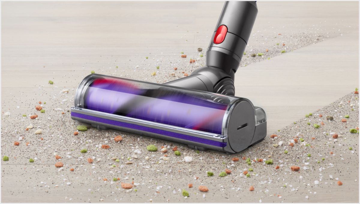 La spazzola Digital Motorbar™ adatta automaticamente la potenza di aspirazione, con la sua tecnologia DLS, ad ogni superficie e districa peli e capelli dal rullo della spazzola.