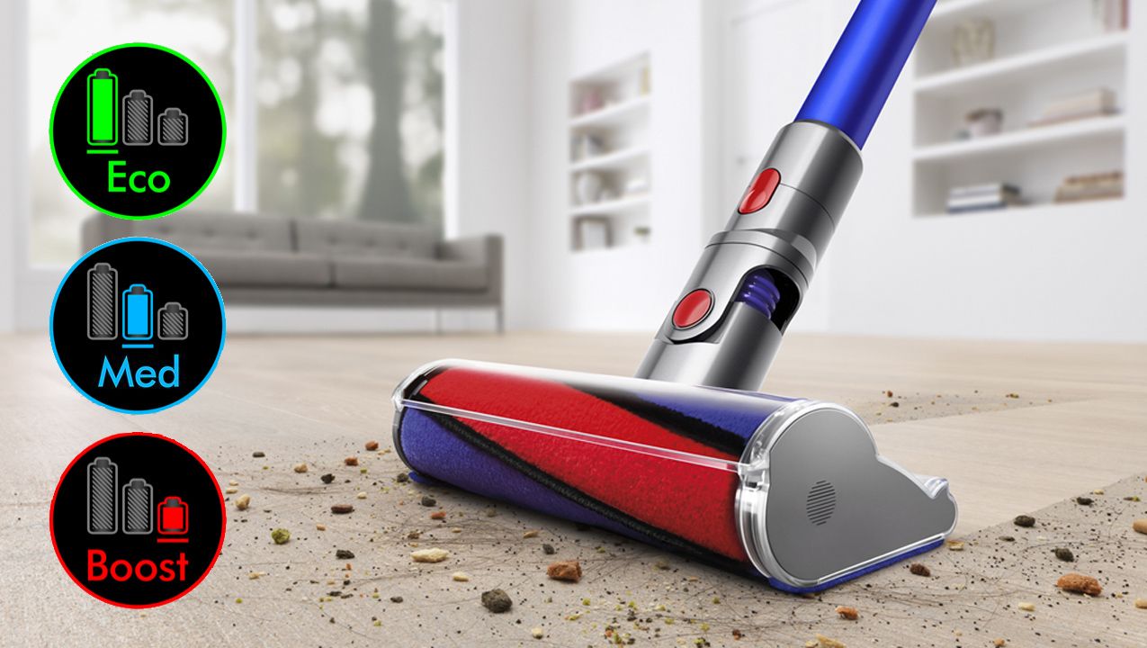 Schermo LCD che riporta le prestazioni in tempo reale, avvisi sulla manutenzione e la modalità di utilizzo. L’accensione con il singolo pulsante permette di non tenere premuto di continuo il bottone quando si usa l’aspirapolvere e di passarlo da una mano all’altra senza interruzioni.